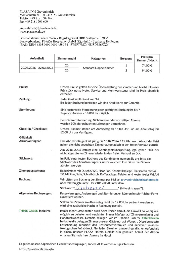 20 EZ und 20 Zimmer zur Doppelbelegung sind bis 15.02.2026 geblockt.